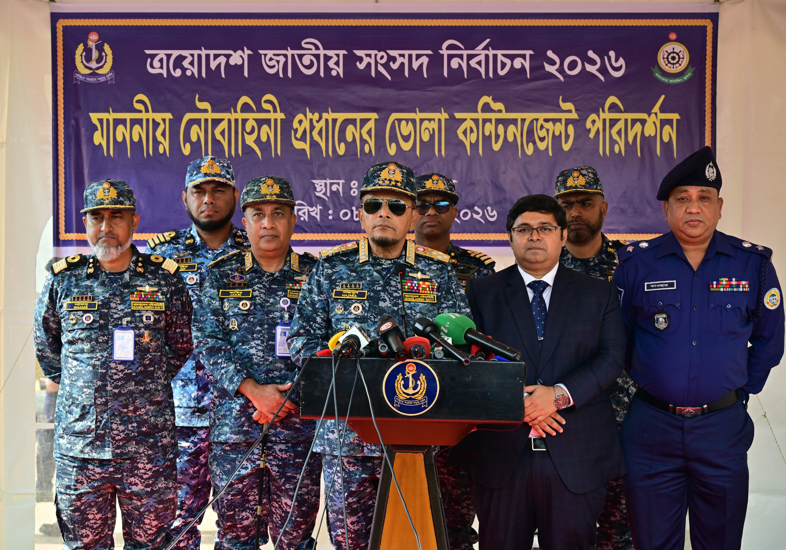আসন্ন ত্রয়োদশ জাতীয় সংসদ নির্বাচন ও গণভোট-২০২৬ অবাধ, সুষ্ঠু, নিরপেক্ষ ও শান্তিপূর্ণভাবে আয়োজনের লক্ষ্যে বাংলাদেশ নৌবাহিনী ‘ইন এইড টু সিভিল